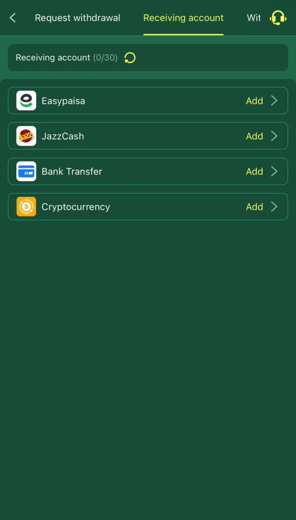 - Choose Withdrawal Method: Select your preferred payment option, such as JazzCash or Easypaisa.